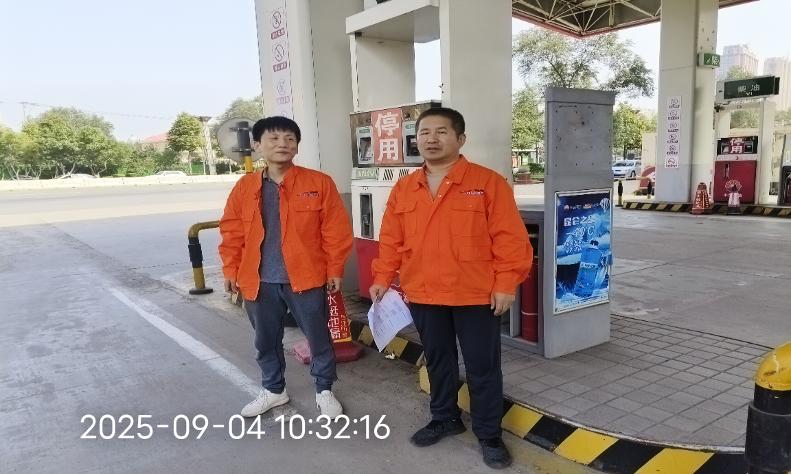 2025年9月4日赴南京路加油站进行现场查勘。本项目改造对原加油站布局不改变,站房、罩棚均不改变,储油区、加油区不改变,罐区改造原有1座汽油罐为甲醇储罐;拆除J04加油机在其加油机位新增1台双枪甲醇加注机(醇气回收型);甲醇加注机位于出口侧。针对改造的甲醇储罐及新增加注机与周边间距进行了测量,并对对增设甲醇加注业务改造项目的周边环境、总平面布置、安全管理、消防、工艺装置、公用工程及辅助设施等进行检查。 |